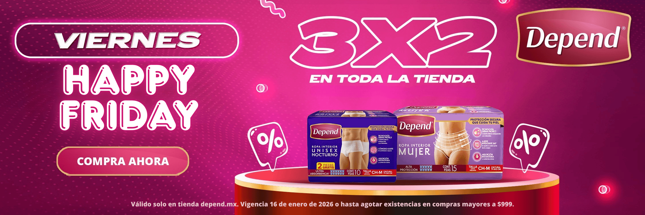 Válido solo en tienda depend.mx. Vigencia 04 de Marzo de 2026 o hasta agotar existencias en compras mayores a $999.